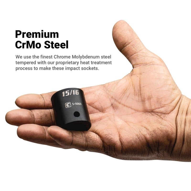 We use the finest Chrome Molybdenum steel tempered with our proprietary heat treatment process to make these impact sockets.