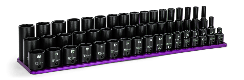 3/8″ Drive Master Impact Socket Set, 6 – 22 mm, Billet Aluminum Tray, Purple