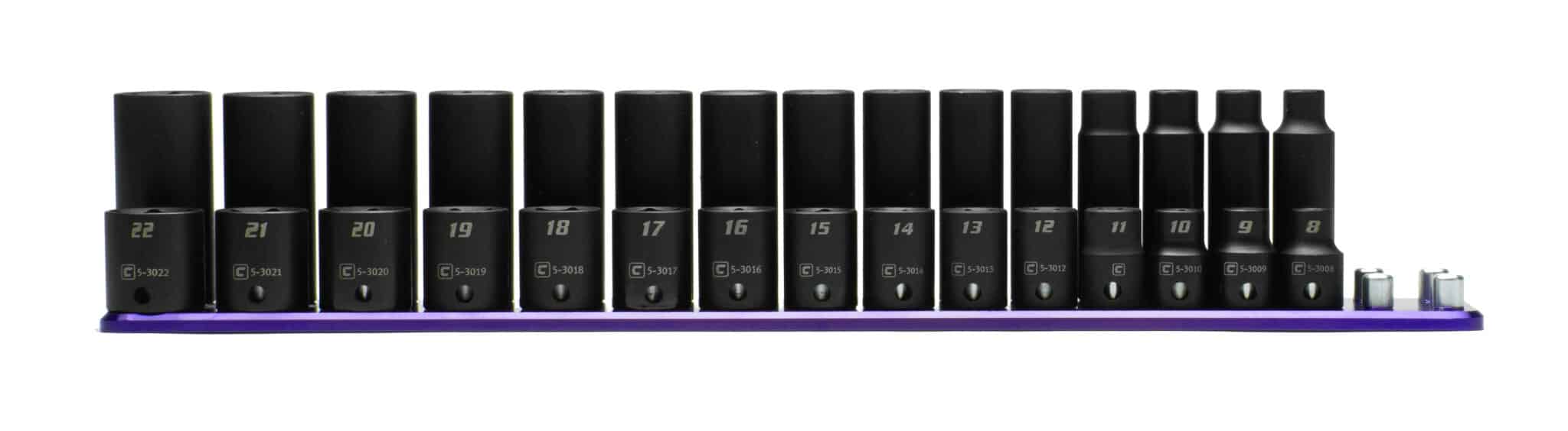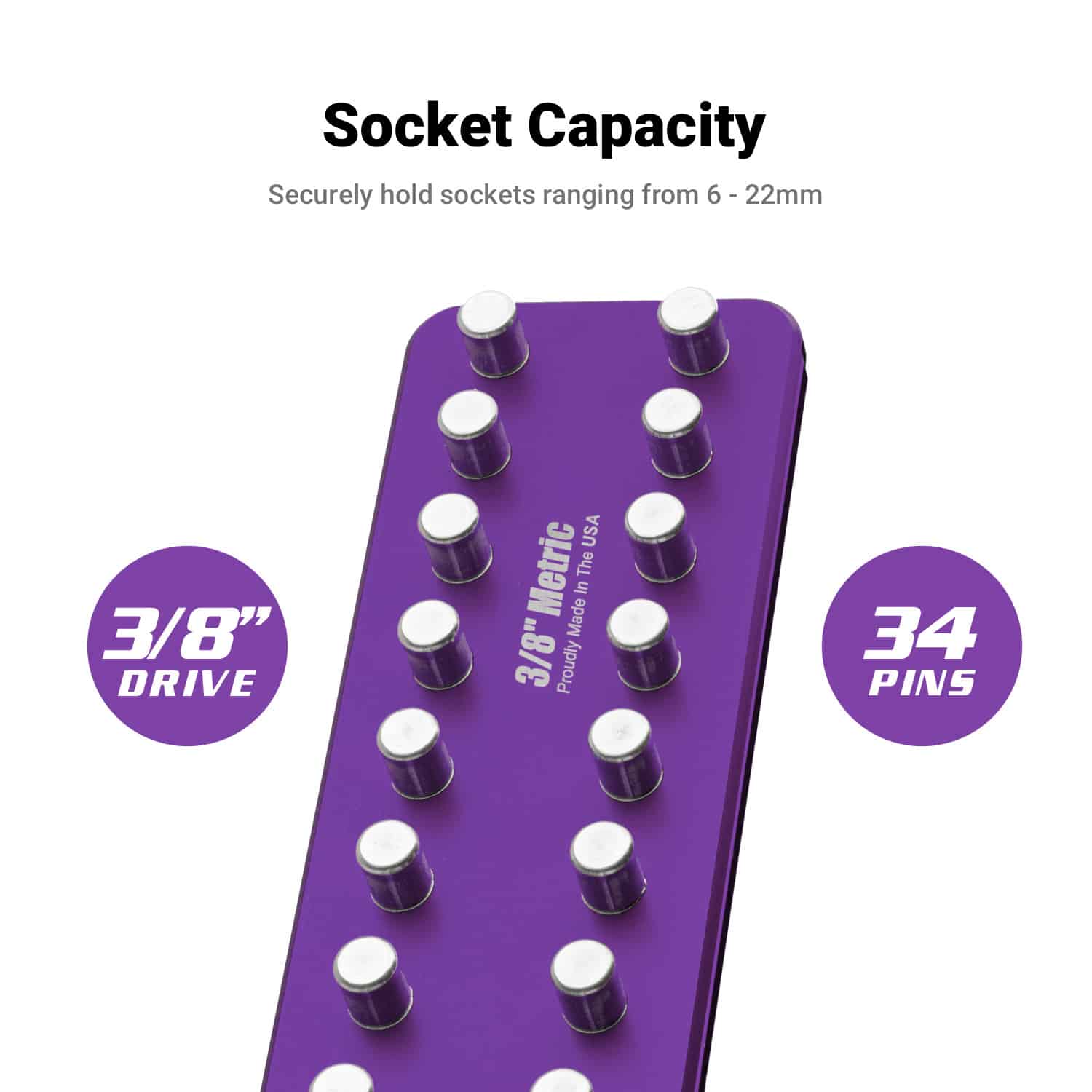 3/8″ Drive Premium 2 Row Aluminum Socket Trays Rail, Metric, Purple