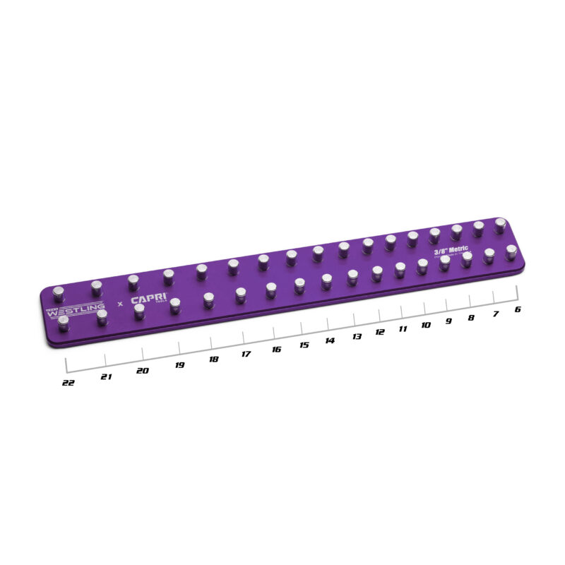 CP50100-38M-PR 3/8" Dr. Billet Aluminum Socket Tray, 2 Row (Purple) 16.25 2.51 0.66 1.06