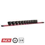 The Capri Tools 3/8 in. Drive Stubby Impact Socket Set is perfect for working in tight spots. The stubby size is 20% shorter than shallow length sockets. We use premium Chrome Molybdenum steel tempered with our proprietary heat treatment process to make these impact sockets and accessories. They are durable and specifically made to withstand high torque from power tools. Each item is expertly coated with manganese phosphate, the preferred coating in military and aerospace, which offers superior protection and corrosion resistance compared to black oxide coating on other impact sockets. The 6-point WaveDrive design grips fasteners more tightly than traditional design, preventing fastener rounding and giving you more leverage. Premium aluminum double-sided socket rail for durable, organized storage — keeps sockets accessible and your workspace efficient. Meets and exceeds ASME B107.110 standards. 12-piece set includes 5/16″, 3/8″, 7/16″, 1/2″, 9/16″, 5/8″, 11/16″, 3/4″, 13/16″, 7/8″, 15/16″, 1″.