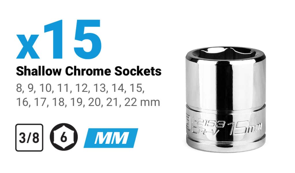 | CP12320-30MSD | 3/8″ Drive Master Chrome Sockets Set, Metric, 8-22 mm | 30 |