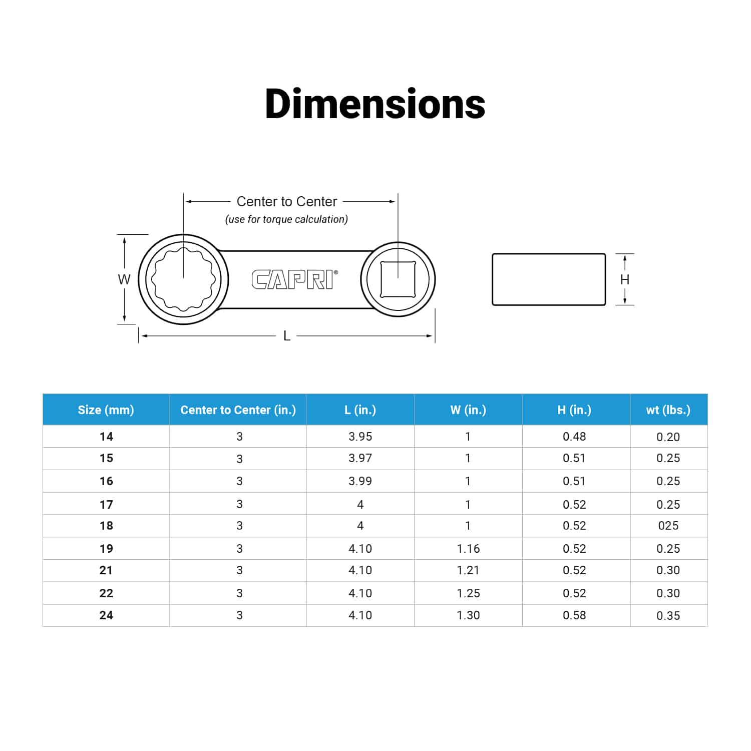 14, 15, 16, 17, 18, 19, 21, 22, 24 mm