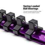 Made with premium aluminum, the socket rail set comes with three different drive sizes, 1/4″, 3/8″ and 1/2″.