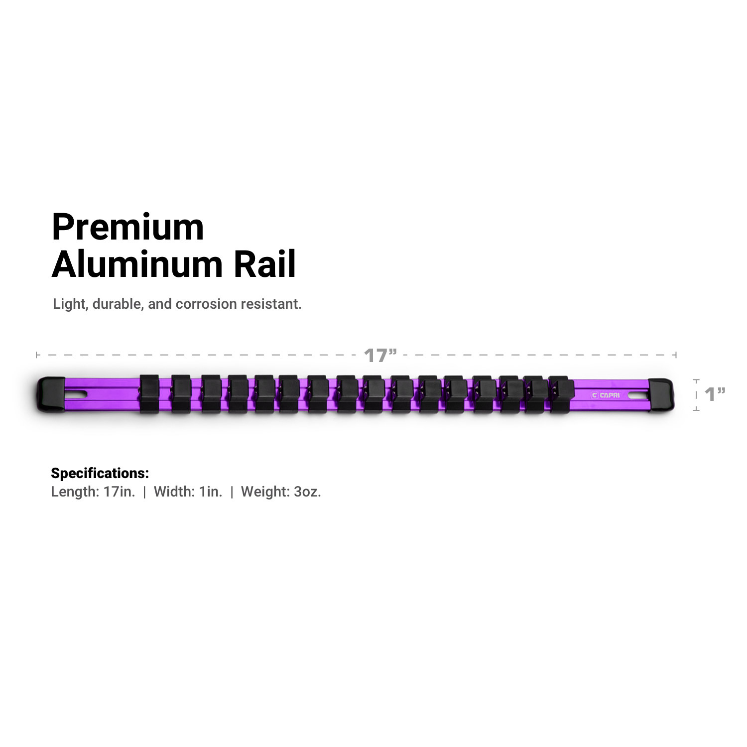 | CP50200-1217PR | 1/2" Aluminum Socket Rail (Purple) | 17 | 1 | 0.4 |