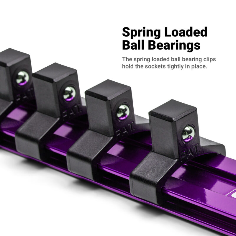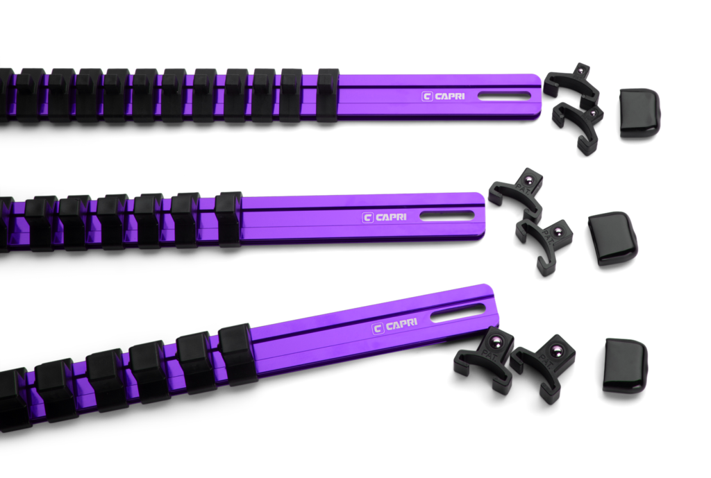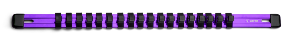 Keep your sockets neatly organized with these versatile Capri Tools Aluminum Socket Rails. Each rail is compatible with all three 1/4″, 3/8″, and 1/2″ drive socket clip sizes, letting you mix and match any way you like. Each socket clip has a spring loaded ball detent which not only holds sockets securely, but also release them easily when you need them. The rail is constructed of premium aluminum which is light, durable and corrosion resistant. The rail comes with open slots on both ends which makes it easy to hang it on your workstation or mount it on the wall.