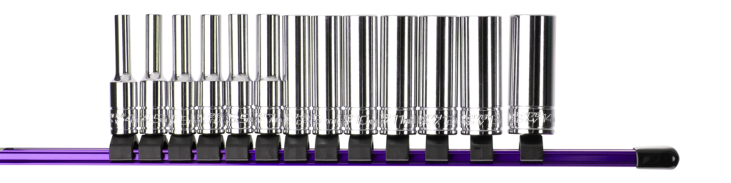 Weighs just over 3 oz. and 1″ wide, the aluminum socket rail is the perfect solution for sockets storage.