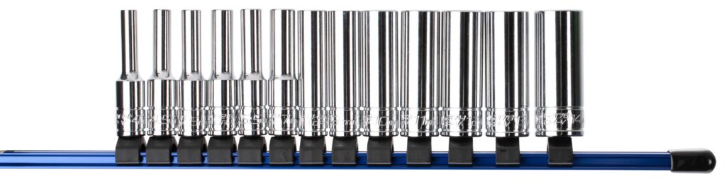 Weighs just over 3 oz. and 1″ wide, the aluminum socket rail is the perfect solution for sockets storage.
