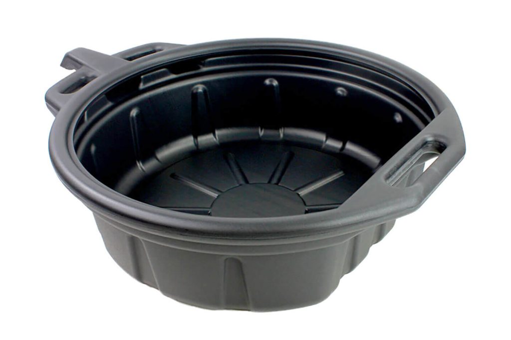 This Capri Tools oil drain pan makes it easy to transfer liquids. High-density polyethylene material is resistant to chemicals and solvents, and is easy to clean. The anti-splash lip contains fluid when pouring and molded handle make carrying, pouring and storing easy.