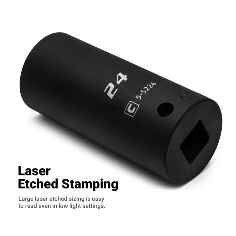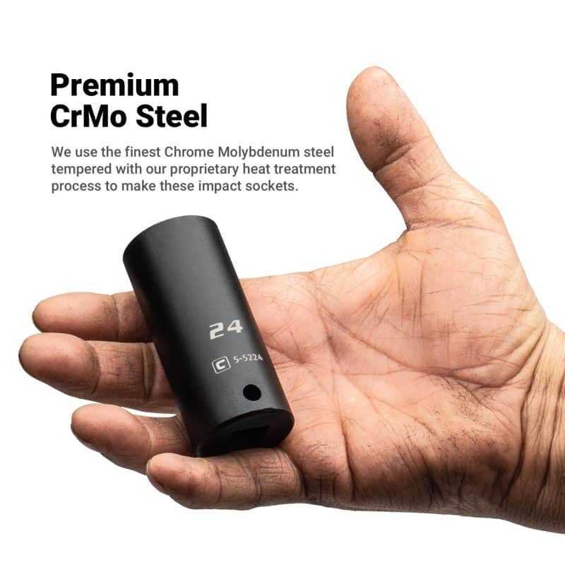 We use the finest Chrome Molybdenum steel tempered with our proprietary heat treatment process to make these impact sockets.