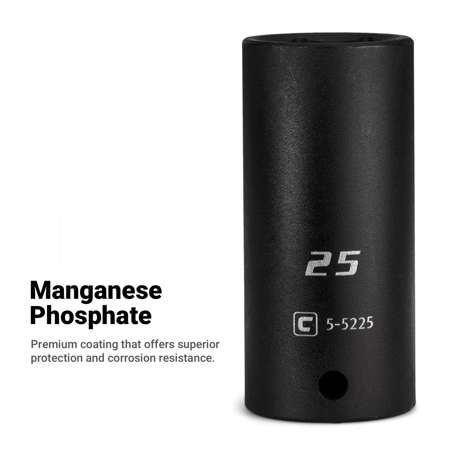 The Capri Tools Impact Socket is a collection of most frequently used deep impact sockets for trucks and heavy equipment. We use premium Chrome Molybdenum steel tempered with our proprietary heat treatment process to make these deep impact sockets. They are durable and specifically made to withstand high torque from power tools. Each item is expertly coated with manganese phosphate, the preferred coating in military and aerospace, which offers superior protection and corrosion resistance compared to black oxide coating on other deep impact sockets. The 6-point WaveDrive design grips fasteners more tightly than traditional design, preventing fastener rounding and giving you more leverage. Meets and exceeds ASME B107.110 standards.