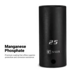 The Capri Tools 3/8 in. Drive Shallow and Deep Impact Socket Set is a collection of most frequently used 3/8 in. drive shallow and deep impact sockets in metric sizes. We use premium Chrome Molybdenum steel tempered with our proprietary heat treatment process to make these impact sockets and accessories. They are durable and specifically made to withstand high torque from power tools. Each item is expertly coated with manganese phosphate, the preferred coating in military and aerospace, which offers superior protection and corrosion resistance compared to black oxide coating on other impact sockets. The 6-point WaveDrive design grips fasteners more tightly than traditional design, preventing fastener rounding and giving you more leverage. Meets and exceeds ASME B107.110 standards. 36-piece set includes (18) 1/2 in. drive deep impact sockets: 10, 11, 12, 13, 14, 15, 16, 17, 18, 19, 20, 21, 22, 23, 24, 25, 26, 27 mm and (18) shallow impact sockets: 10, 11, 12, 13, 14, 15, 16, 17, 18, 19, 20, 21, 22, 23, 24, 25, 26, 27 mm. Comes with a billet aluminum socket rail made by Westling Machine in the USA.