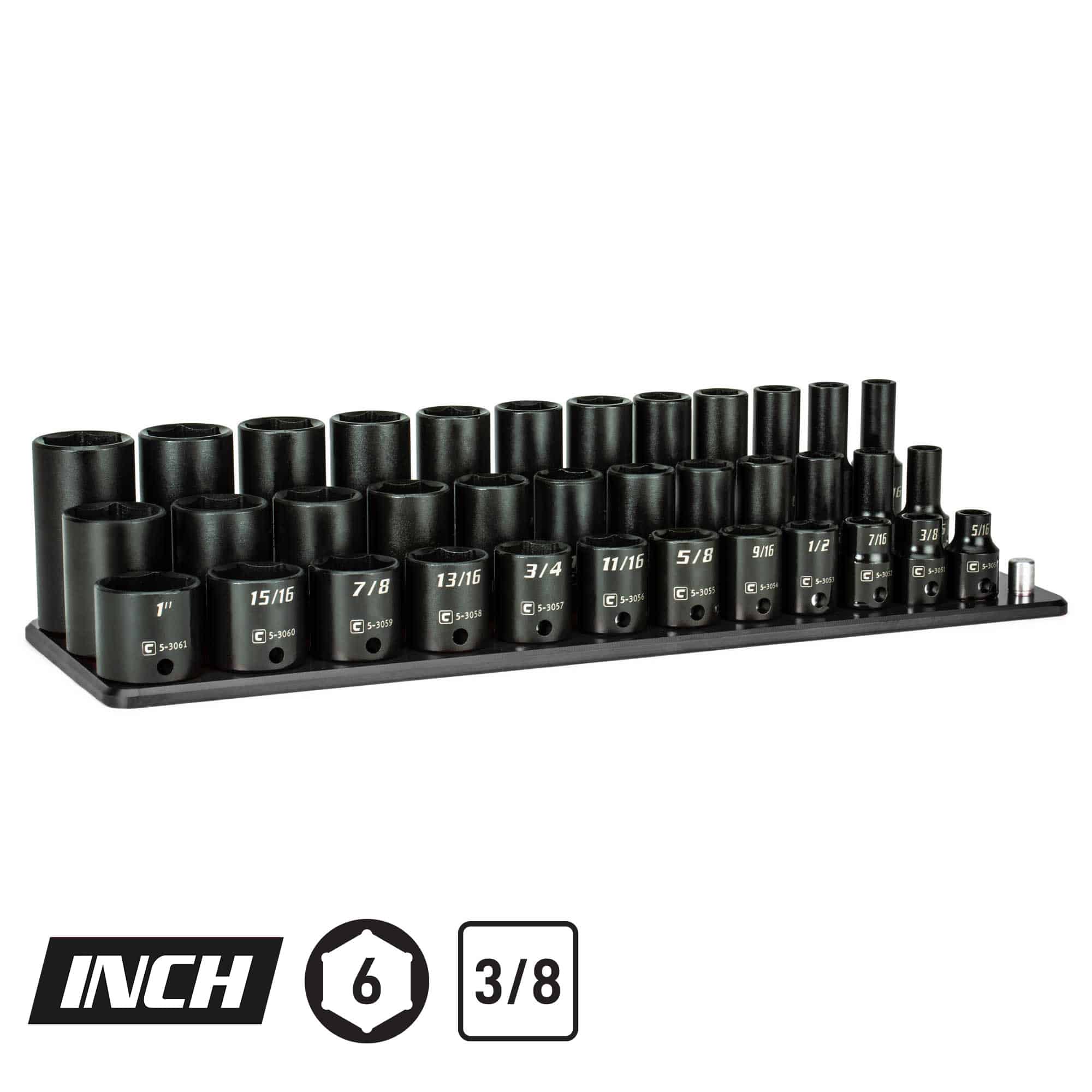The Capri Tools 3/8 in. Drive Shallow, Semi-Deep and Deep Impact Socket Set is a collection of most frequently used 3/8 in. drive impact sockets in SAE sizes. We use premium Chrome Molybdenum steel tempered with our proprietary heat treatment process to make these impact sockets and accessories. They are durable and specifically made to withstand high torque from power tools. Each item is expertly coated with manganese phosphate, the preferred coating in military and aerospace, which offers superior protection and corrosion resistance compared to black oxide coating on other impact sockets. The 6-point WaveDrive design grips fasteners more tightly than traditional design, preventing fastener rounding and giving you more leverage. Meets and exceeds ASME B107.110 standards. 36-piece set includes (12) 3/8 in. drive shallow impact sockets, (12) 3/8 in. drive semi-deep impact sockets, and (12) 3/8 in. drive deep impact sockets in the following sizes : 5/16, 3/8, 7/16, 1/2, 9/16, 5/8, 11/16, 3/4, 13/16, 7/8, 15/16, 1 in.