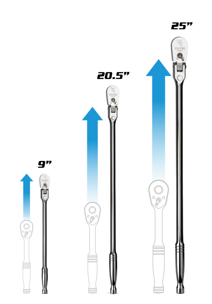| CP90C12FXL | 1/2" Dr. Extra Long Locking Flex-Head Ratchet | 25 | 1.5 | 2.65 |