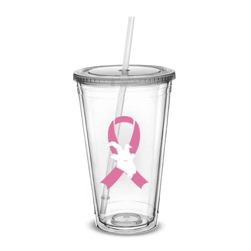 High quality 100% acrylic Transparent plastic, equipped with a secured screw on rubber gasket sealed lid and matching colored reusable stay put straw.