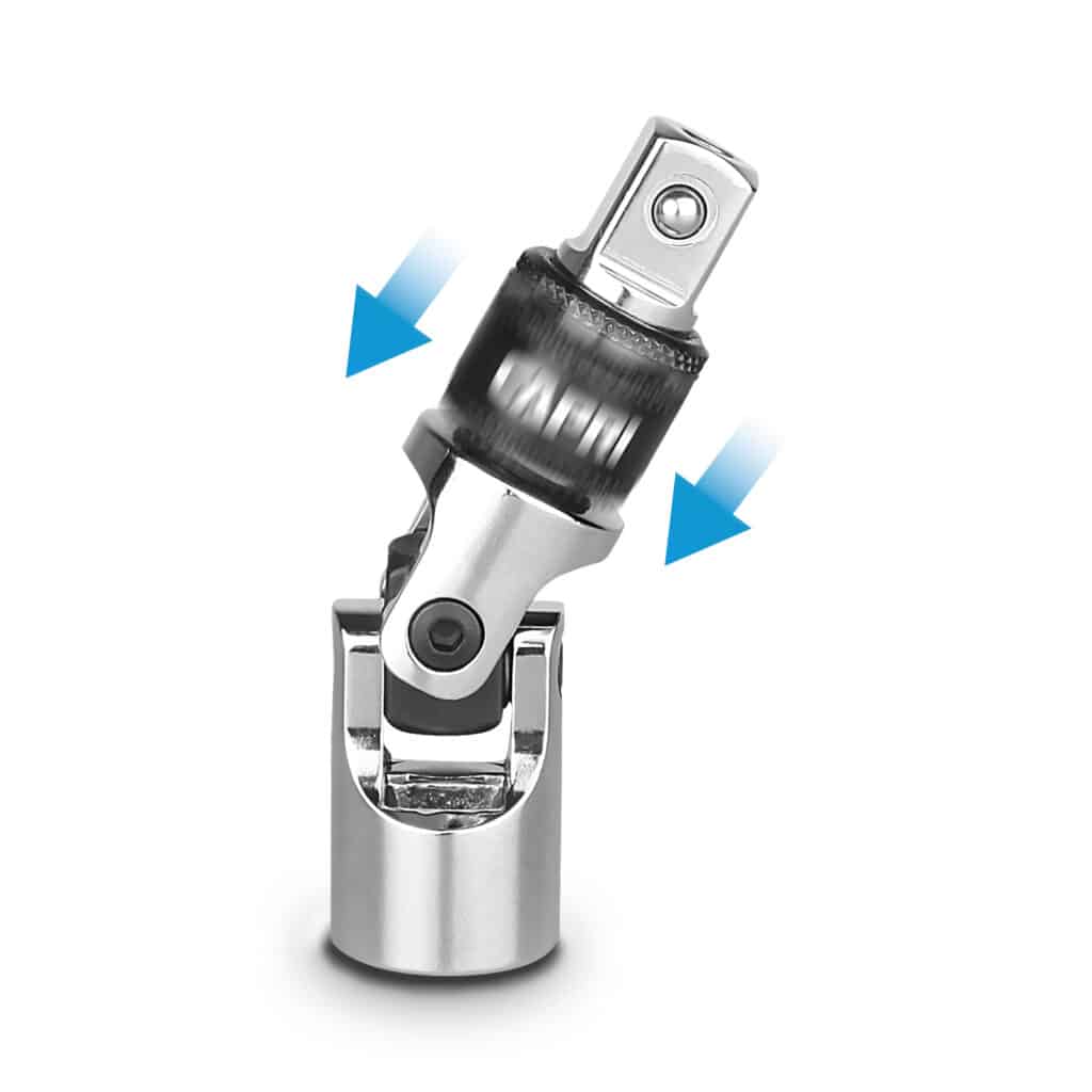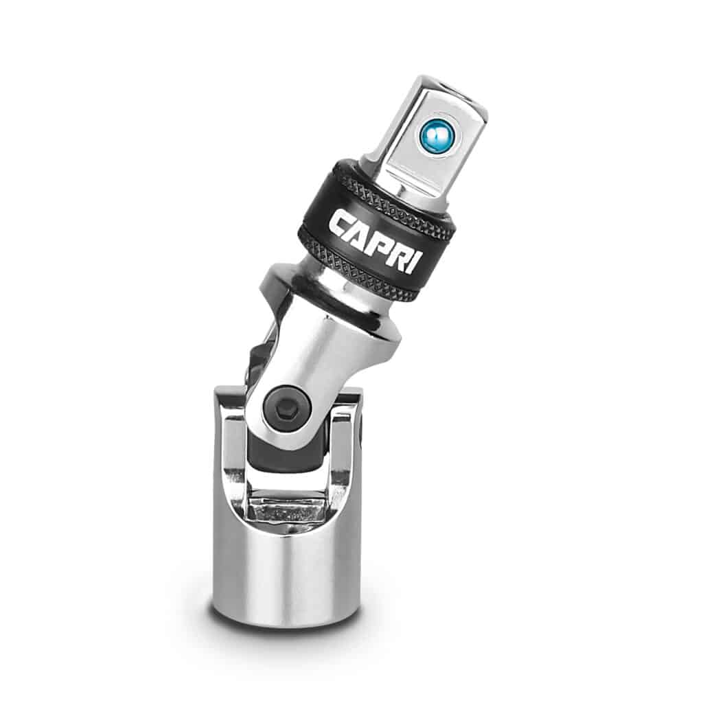 The Capri Tools Locking Universal Joint Set helps you reach fasteners in tight corners and spaces. It features spring-loaded detent balls that securely hold sockets in place, and a pull down ring that effortlessly releases the sockets letting you switch between sockets on the fly. Constructed of premium Chrome Vanadium steel tempered with our proprietary heat treatment process to withstand more torque. Each item underwent careful polishing and protective plating process to achieve our own flawless MaxChrome finish. Chrome Vanadium tools are designed for hand tools and should be used with hand (non-powered) tools only. For applications using power tools, use Capri Tools impact sockets, adapters and extensions. 3-piece set: 1/4 in. drive, 3/8 in. drive, and 1/2 in. drive universal joints.