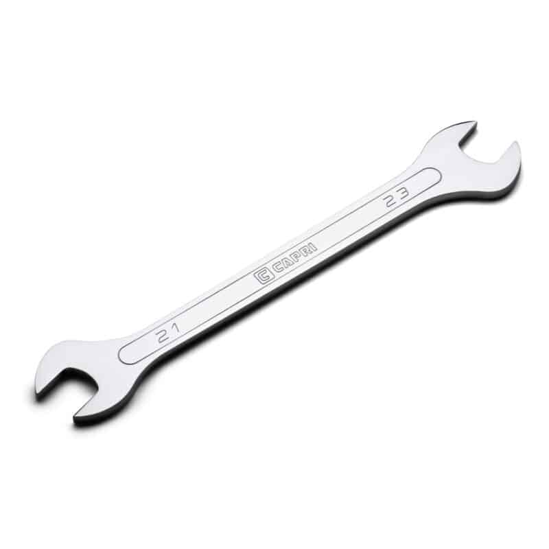 Super-thin ultra low profile wrenches let you reach fasteners in tight clearance. Just 2.2 to 4.6 mm thin and constructed of premium forged steel, these super-thin open end wrenches are truly versatile and are made to last. The wrench head is tipped at a 15-degree angle. Useful especially in narrow spots, after each 15-degree turn, flip the wrench over to quickly engage the fastener again. Premium Chrome Vanadium steel forged with a complete 10-step state of the art heat treatment process, constructed for serious professionals. Flawless MaxChrome plating, achieved through thorough polishing and careful application of chrome protective plating, ensures durability and corrosion resistance.Â