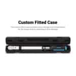The blow mold case provides secure storage and transportation for the torque wrench, protecting it from damage.