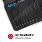 17 large printed SAE sizes, easy to organize and find the size you need.